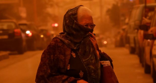 Είναι τέτοια η αμμοθύελλα, που η πόλη είναι κυριολεκτικά κίτρινη, ενώ από τις Δαφνές, το Ηράκλειο έχει… εξαφανιστεί!