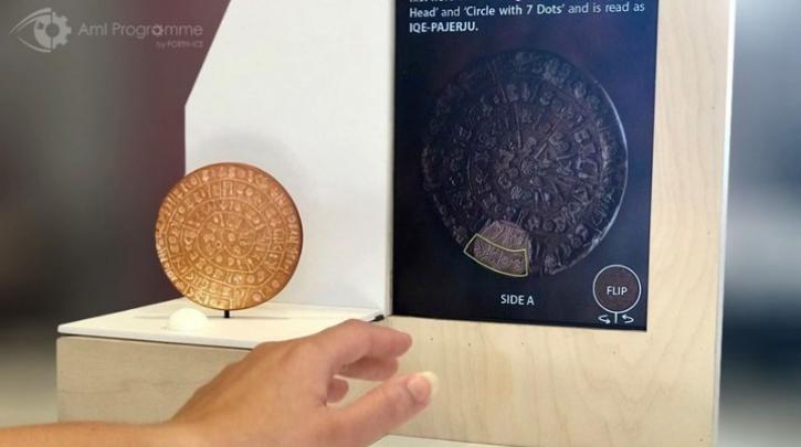 Μπορεί ακόμη να αναζητήσει σε αυτόν τα σύμβολα που παραπέμπουν τους επιστήμονες στη θεά του έρωτα, τη Μινωϊκή Αστάρτη, στην προσπάθειά τους να αποκρυπτογραφήσουν το μυστηριώδες κείμενο. Και όλα αυτά χωρίς να κινδυνεύει να σπάσει ή να πέσει από τα χέρια του επισκέπτη, ένα σπάνιο αρχαιολογικό εύρημα, που δημιουργήθηκε τη δεύτερη χιλιετία π.Χ.
