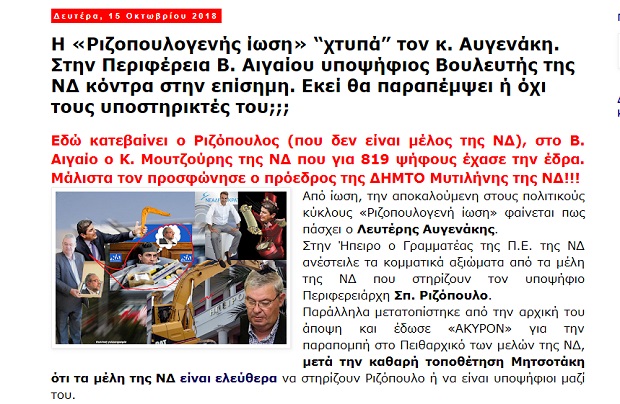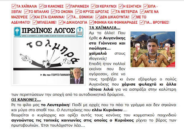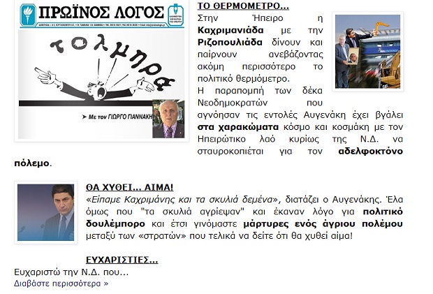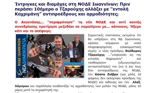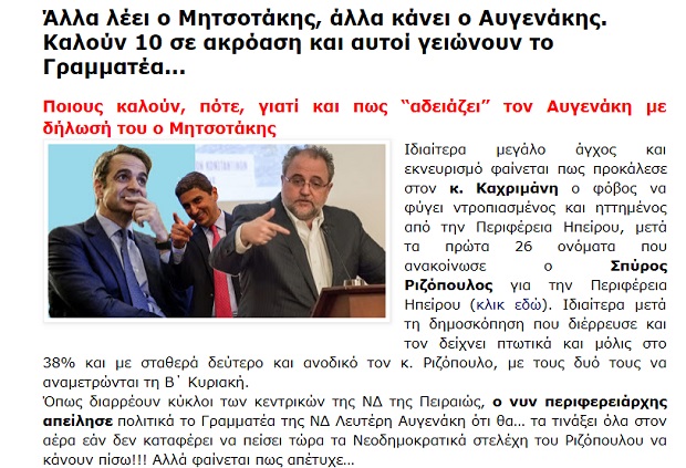 Δείτε ( εδώ , εδώ και εδώ ) μερικά από τα σχετικά δημοσιεύματα του epirusin.blogspot.com, που υποστηρίζει τον χώρο της ΝΔ. Επίσης εικόνες από αναρτήσεις και το φωτογραφικά κολάζ, περιπαιχτικά για τον κ. Αυγενάκη, που ανάρτησε: