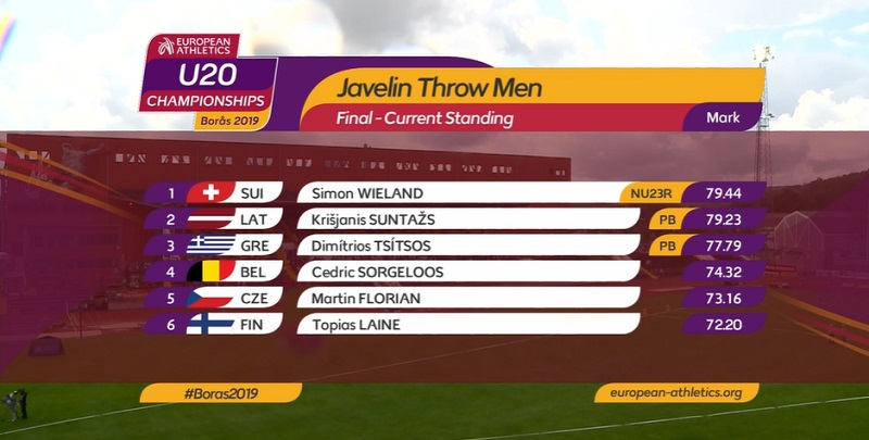 Το χάλκινο μετάλλιο στον ακοντισμό του Πανευρωπαϊκού Πρωταθλήματος κάτω των 20 ετών, κατέκτησε ο Έλληνας πρωταθλητής, Δημήτρης Τσίτσος, κάνοντας μάλιστα ατομικό ρεκόρ με 77,79 μ.