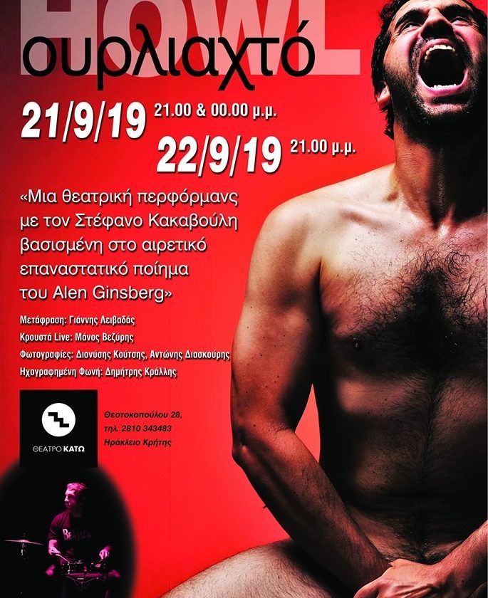 Το Θέατρο Κάτω φιλοξενεί για 3 παραστάσεις το «Ουρλιαχτό», μία θεατρική performance με τη μορφή μονολόγου. Το Σάββατο 21 και την Κυριακή 22 Σεπτεμβρίου ένα ποίημα θα πάρει σάρκα και οστά από τον ηθοποιό και θεατρικό συγγραφέα Στέφανο Κακαβούλη στη σκηνή του Θεάτρου Κάτω, υπό τον ήχο των κρουστών του Μάνου Βεζύρη.