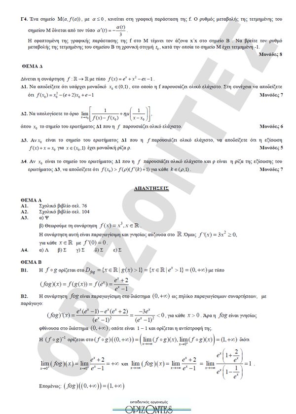 Δείτε τις απαντήσεις του Φροντιστηρίου «Ορίζοντες»: