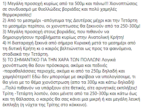 1) Μεγάλη προσοχή κυρίως από τα 500μ και πάνω!!! Χιονοπτώσεις σε συνδυασμό με θυελλώδεις βοριάδες και πολύ χαμηλές θερμοκρασίες!