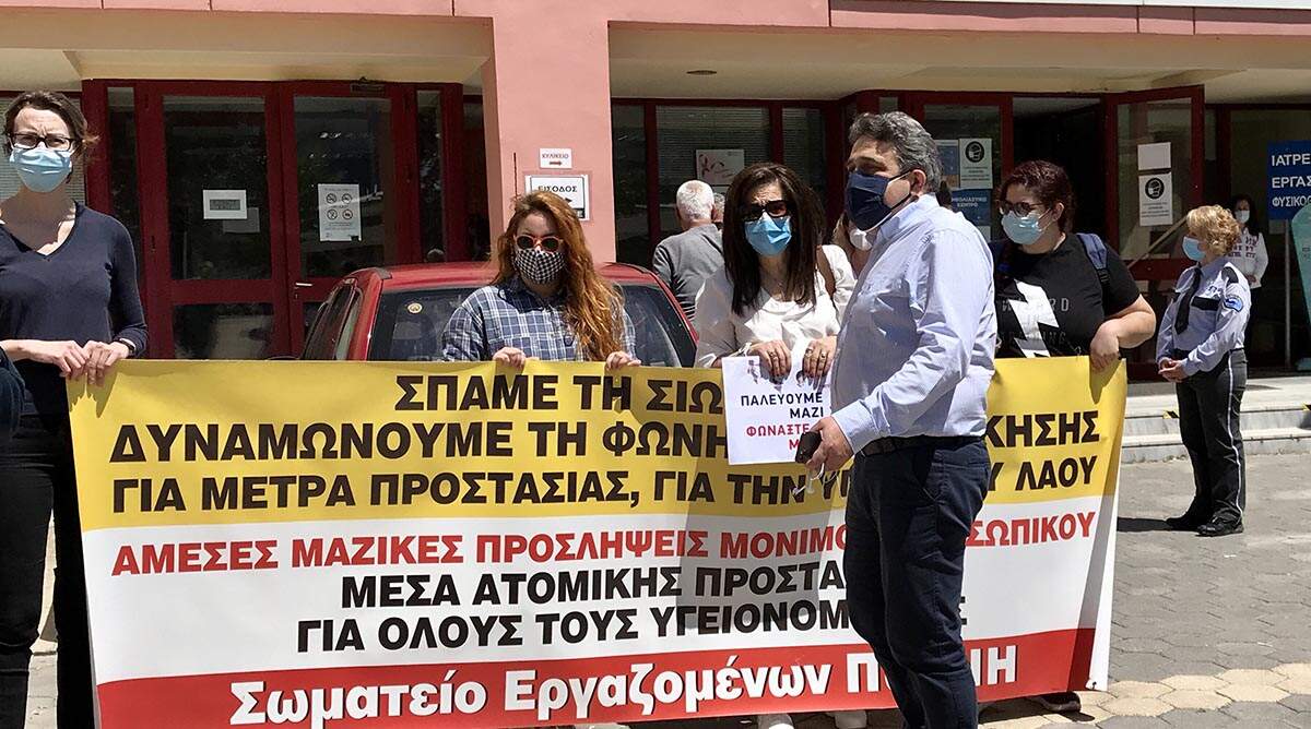 Τρίωρη στάση εργασίας πραγματοποίησαν σήμερα οι εργαζόμενοι του ΠΑΓΝΗ, και στη συνέχεια προχώρησαν σε κινητοποίηση στην 7η ΥΠΕ, το πρωί της Πέμπτης.