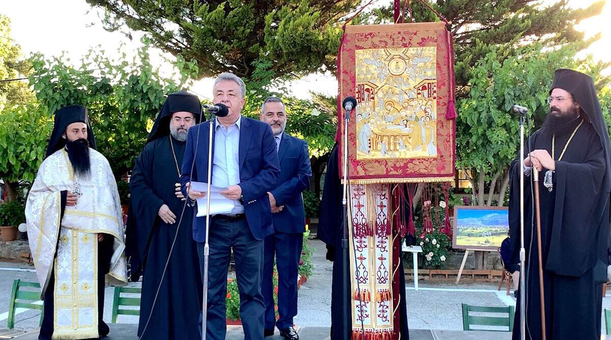 «Mε ιδιαίτερη συγκίνηση υποδεχόμαστε σήμερα στο Οροπέδιο του Λασιθίου, στην ιστορική Μονή της Κοιμήσεως της Θεοτόκου Κρουσταλλένιας, το Ιερό Λάβαρο της Επανάστασης από την Αγία Λαύρα. Το μοναστήρι που σημάδεψε τη νεότερη ιστορία του ελληνικού κράτους. Που έδωσε τη δύναμη σε έναν υπόδουλο λαό να σηκώσει το κεφάλι, να ορκιστεί στα ιερά και τα όσια της πατρίδας μας. για την Ελευθερία ή το Θάνατο. Με τον ίδιο σεβασμό υποκλινόμαστε και σήμερα μπροστά στο μεγάλο κατάλογο των Κρητικών, που από το Οροπέδιο του Λασιθίου το Μάη του 1867, άναψαν μια άλλη μεγάλη φλόγα για να φωτίζει μαζί με την Ιερή Φλόγα του Αρκαδίου, τις γενιές των Ελλήνων. Στις αλλεπάλληλες επαναστάσεις της Κρήτης, ο Κρητικός λαός έδωσε μεγάλες μάχες, για εθνικές αξίες και μεγάλες αρετές.