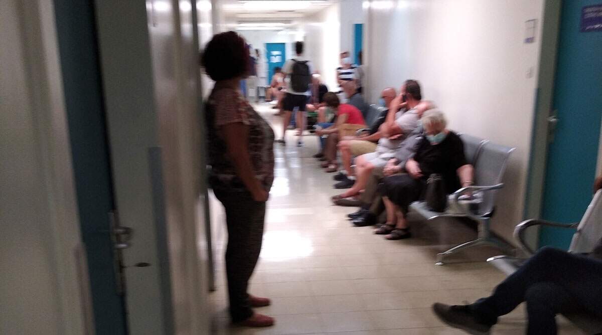 Η φωτογραφία που μας στέλνει από τα εξωτερικά ιατρεία του νοσοκομείου χαρακτηριστική, με αρκετούς ασθενείς να περιμένουν να εξεταστούν, οι οποίοι βρίσκονται κοντά μεταξύ τους στον κλειστό χώρο.