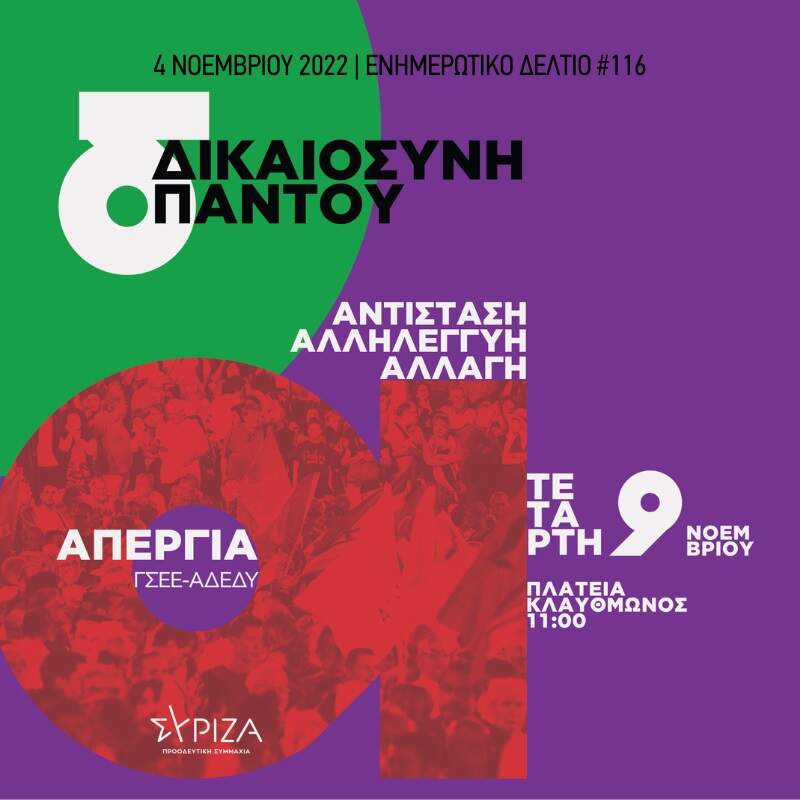 - Κατάργηση των αντεργατικών νόμων Μητσοτάκη/Χατζηδάκη