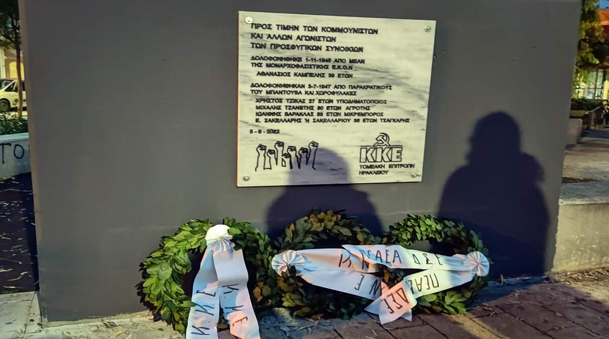 Η ΤΕ Ηρακλείου του ΚΚΕ τοποθέτησε στην πλατεία Ατσαλένιου (Αναξαγόρα) τιμητική πλακέτα στη μνήμη των κομμουνιστών που εκτελέσθηκαν στην προσφυγική συνοικία του Ατσαλένιου την περίοδο 1945-1947 οι οποίοι είναι: