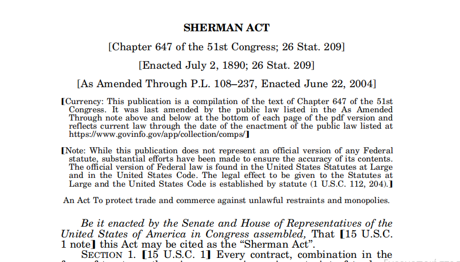 Απλά να γνωρίζεις ότι το καρτέλ της ενέργειας των Ροκφέλερ στην Αμερική εσταμάτησε Κώστα μου το 1890 με τον αντιτρομοκρατικό νόμο Sherman ο οποίος κήρυξε κυριολεκτικά τον πόλεμο στα Αμερικανικά καρτέλ ενέργειας, σιδηροδρομων, καλαμποκιού κλπ Κώστα μου. Το δικό μας ιδιωτικό καρτέλ ενέργειας ολοκληρώθηκε το 2022 Κώστα μου… Ο Μητσοτάκης στις ΗΠΑ θα ήταν τρομοκράτης Κώστα μου έτσι που έκανε την αγορά ενέργειας και τροφίμων.