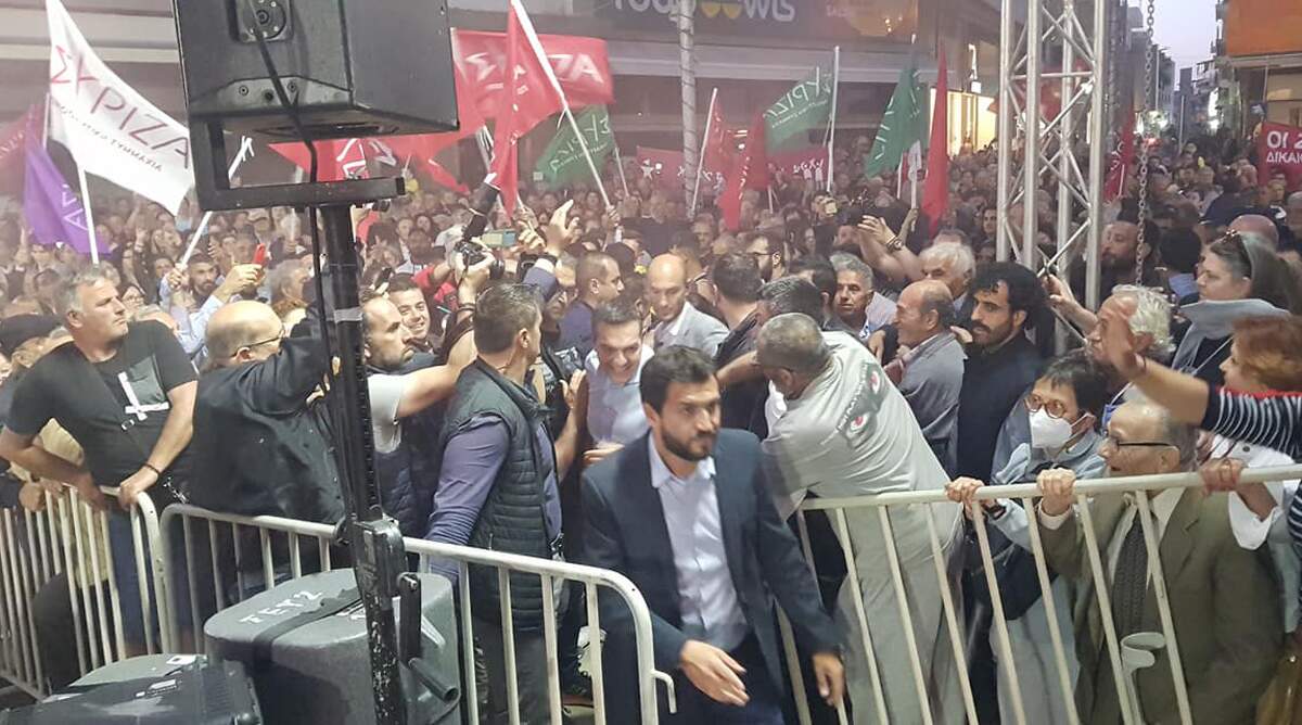 Ήδη από νωρίς το απόγευμα η πλατεία Ελευθερίας είχε γεμίσει από τον κόσμο, ενώ θερμή ήταν η υποδοχή των πολιτών στον πρόεδρο του ΣΥΡΙΖΑ -ΠΣ, με σημαίες του κόμματος, καπνογόνα και χειροκροτήματα, όπως δείχνουν βίντεο και φωτογραφίες που δημοσίευσε ο Δημήτρης Κλαράκης.