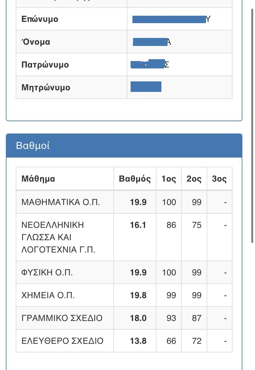 Έτσι, μία μαθήτρια που έγραψε εξαιρετικά στις Πανελλαδικές, με 19,9 σε Μαθηματικά και Φυσική, 19,8 στην Χημεία και 16,1 στην Νεοελληνική Γλώσσα και Λογοτεχνία, καθώς και 18 στο ειδικό μάθημα για το Γραμμικό Σχέδιο, «εξορίζεται» από σχολές με βάση χαμηλότερη κατά χιλιάδες μόρια από την επίδοσή της.