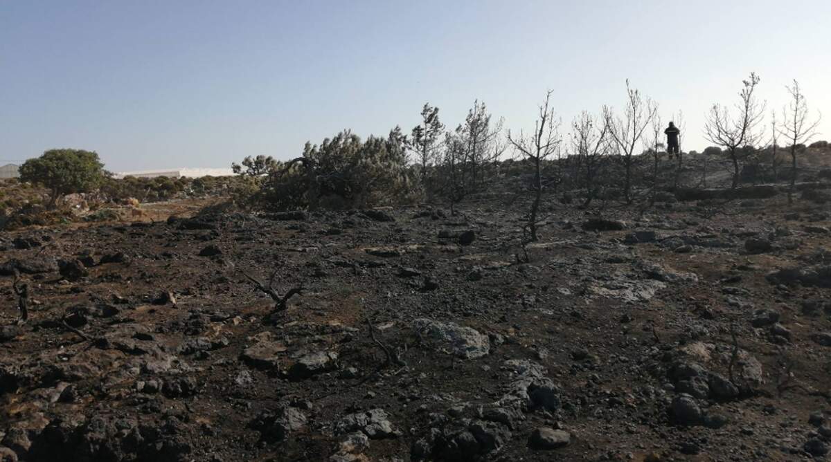 Το πύρινο μέτωπο έκαψε περίπου ένα στρέμμα γεωργικής έκτασης.