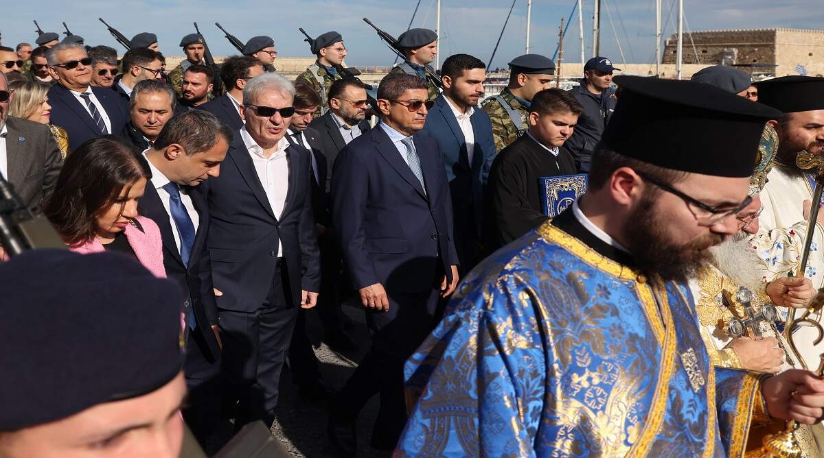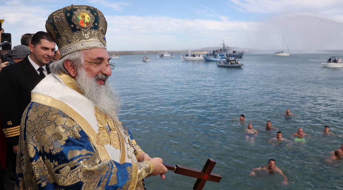 Οι εκδηλώσεις εορτασμού των Θεοφανίων στο Ηράκλειο τελέστηκαν ιερουργούντος του Σεβασμιότατου Αρχιεπισκόπου Κρήτης κ.κ. Ευγενίου. Μετά την ακολουθία του Μεγάλου Αγιασμού στον Ι.Ν. Αγίου Τίτου ακολούθησε η λιτανεία προς το λιμάνι και η τελετή καθαγιασμού των υδάτων.
