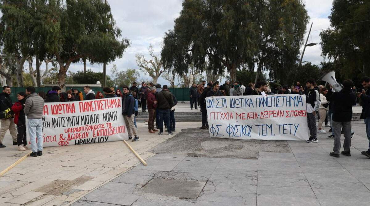 Στο Ηράκλειο φοιτητές, εκπαιδευτικοί καθώς και σωματεία εργαζομένων έδωσαν το «παρών» στην πλατεία Ελευθερίας, ενώ μετά ακολούθησε πορεία στους κεντρικούς δρόμους της πόλης.