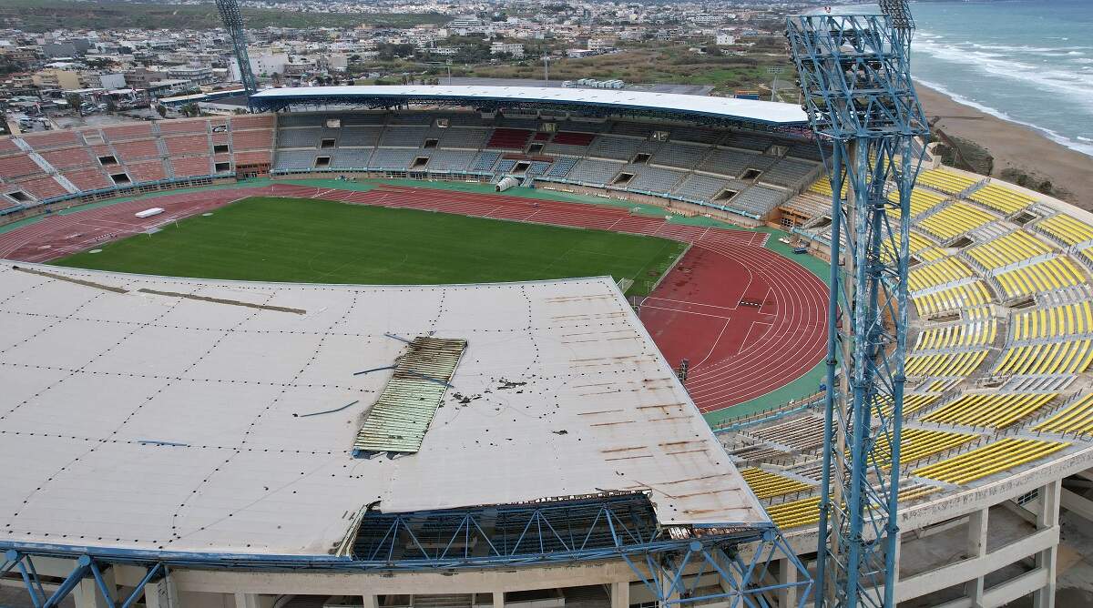 Αποκολλήθηκε τμήμα από το στέγαστρο του Παγκρητίου Σταδίου – Κλείνει επ’ αόριστον