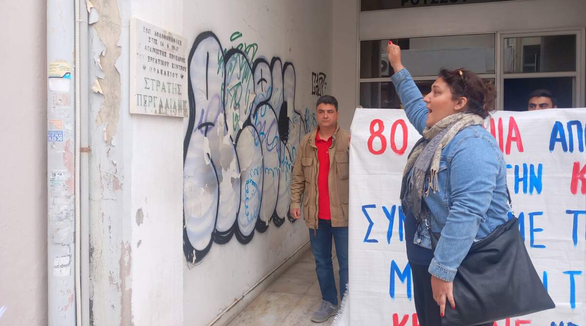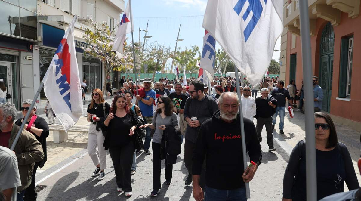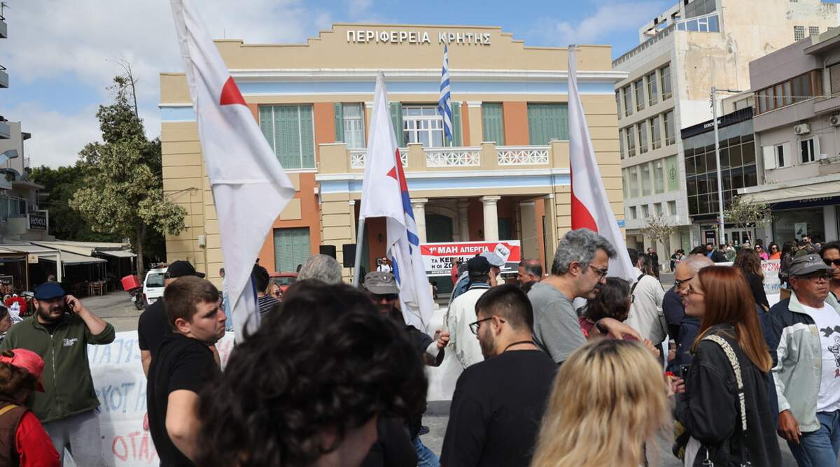 Κόσμος συγκεντρώθηκε στο Εργατικό Κέντρο Ηρακλείου, το άγαλμα Βενιζέλου καθώς και στην πλατεία Ελευθερίας, ενώ ακολούθηκε πορεία στους κεντρικούς δρόμους της πόλης.