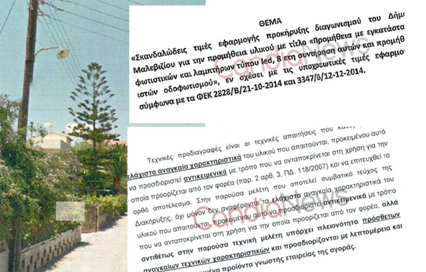 Καταγγελίες για ένα “φωτογραφικό διαγωνισμό” του δήμου Μαλεβιζίου, με σκανδαλώδεις τιμές, που ανεβάζουν μέχρι και από 2,5 φορές πάνω την τιμή ορισμένων φωτιστικών αλλά και συνολικά τον προϋπολογισμό του έργου, φτάνοντάς τον κοντά στα 4 εκατομμύρια ευρώ, διατυπώνουν εταιρείες προμηθευτών! Οι καταγγελίες έχουν φτάσει μέχρι το γραφείο του πρωθυπουργού Αλέξη Τσίπρα καθώς επίσης στην εισαγγελία Εφετών Κρήτης και τον Επιθεωρητή Δημόσιας Διοίκησης, Λέανδρο Ρακιντζή.