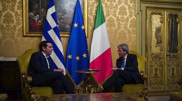 O πρωθυπουργός Αλέξης Τσίπρας συναντήθηκε με τον Ιταλό ομόλογό του Πάολο Τζεντιλόνι στο κυβερνητικό μέγαρο της Ρώμης Παλάτσο Κίτζι.