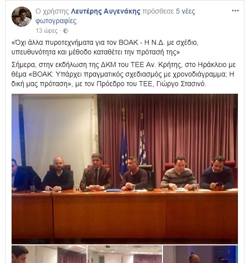 Από την πρώτη ημέρα που ανέλαβε τη διακυβέρνηση της χώρας η κυβέρνηση Τσίπρα, ο γαλάζιος βουλευτής της ΝΔ στο Ηράκλειο, Λευτέρης Αυγενάκης, χρέωνε σε αυτήν όλα τα κακά του τόπου. Ανάμεσα στα άλλα ότι… καθυστερούσε (από την πρώτη μέρα, να μην ξεχνιόμαστε!) ο δρόμος Ηράκλειο – Μεσαρά και ότι δεν έκανε τίποτε για τον θανατηφόρο ΒΟΑΚ, την αμαρτία της διαπλοκής ΠΑΣΟΚ – ΝΔ και των συμφερόντων τους.