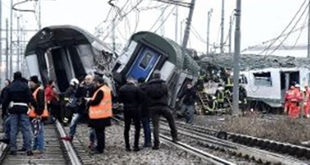 Σε απόσταση δεκαπέντε χιλιομέτρων από το Μιλάνο, εκτροχιάστηκαν δυο κεντρικά βαγόνια του τραίνου και οι πυροσβέστες, μαζί με καραμπινιέρους και αστυνομικούς, συνεχίζουν να εργάζονται αδιάκοπα, για να απεγκλωβίσουν τους τελευταίους τραυματίες.