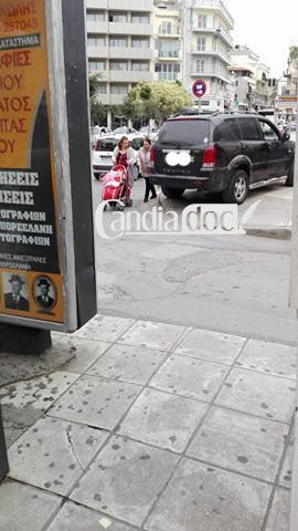 Φωτογραφία που μας έστειλε από την πλατεία Κορνάρου, δείχνει ένα μαύρο τζιπ παρκαρισμένο στο πεζοδρόμιο, ενώ μητέρα με το καροτσάκι του μωρού της βρίσκεται στον δρόμο.