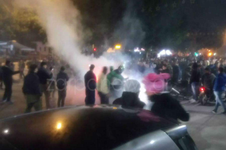 Μάλιστα, δημιουργήθηκαν εντάσεις μεταξύ αστυνομικών και νεαρών για την διατάραξη, με αποτέλεσμα να ριφθούν και χειροβομβίδες κρότου-λάμψης, για να αποκατασταθεί η τάξη.