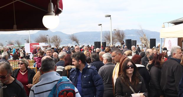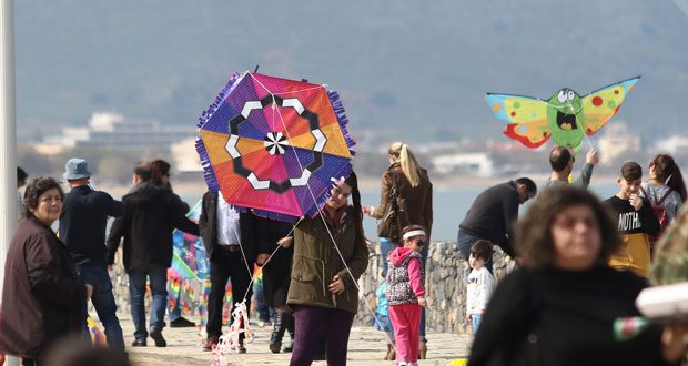 Πλήθος Ηρακλειωτών, που δεν βγήκαν εκτός των τειχών για το παραδοσιακό πέταγμα του αετου, μαζεύτηκαν στην παραλιακή του Ηρακλείου για να περάσουν την Καθαρά Δευτέρα.