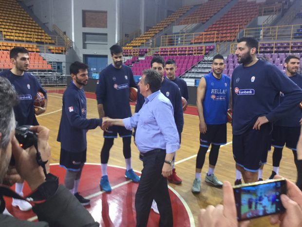 Τους παίχτες της Εθνικής Μπάσκετ, τον προπονητή και τους εκπροσώπους της Ελληνικής ομοσπονδίας καλαθοσφαίρισης συνάντησε και χαιρέτησε αργά το απόγευμα στο κλειστό γήπεδο στα «Δυο Αοράκια» ο Περιφερειάρχης Κρήτης Σταύρος Αρναουτάκης.