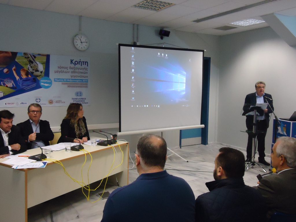 Ο Περιφερειάρχης Σταύρος Αρναουτάκης καλωσορίζοντας στην ημερίδα τον Ομοσπονδιακό Προπονητή Μπάσκετ Θανάση Σκουρτόπουλο, αλλά και τον Πρόεδρο του ΠΣΑΤ Σωτήρη Τριανταφύλλου, αφού ευχήθηκε καλή επιτυχία στα παιχνίδια της εθνικής μας με την Εσθονία και την Μ. Βρετανία αύριο Παρασκευή 22 και την Κυριακή 25 Φεβρουαρίου στο Ηράκλειο, επεσήμανε, ότι, η ημερίδα προστίθεται θετικά στην προσπάθεια που καταβάλλεται τα τελευταία χρόνια στην Περιφέρεια Κρήτης, για την ανάδειξη του νησιού, ως τόπου διεξαγωγής μεγάλων αθλητικών διοργανώσεων με την παράλληλη ενίσχυση και του αθλητικού τουρισμού.