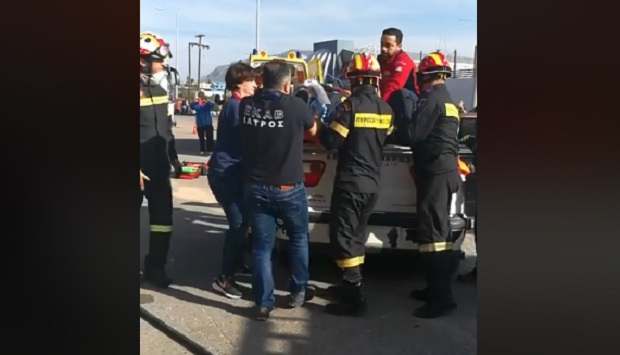 Οι διασώστες στο Ηράκλειο πλησιάζουν το όχημα που έχει εμπλακεί σε τροχαίο και καταφέρνουν να απεγκλωβίσουν από αυτό έναν άνδρα.