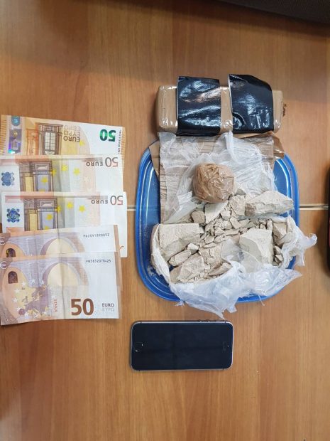 Στη συνέχεια ακινητοποιήθηκε και συνελήφθη ο 59χρονος και σε έλεγχο που πραγματοποιήθηκε, βρέθηκαν στην κατοχή του και κατασχέθηκαν 470 γραμμάρια ηρωίνης, το χρηματικό ποσό των 250 ευρώ ως προερχόμενο από παράνομες δραστηριότητες και κινητό τηλέφωνο.