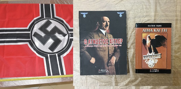 Εκτός από τα βιβλία για τον Χίτλερ, μεταξύ των ευρημάτων που την αποκάλυψή τους δημοσιοποίησε η αστυνομία υπάρχουν: