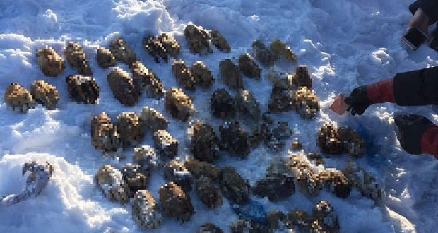 Το μακάβριο εύρημα εντοπίστηκε από ντόπιους ψαράδες, οι οποίοι, σύμφωνα με τοπικά ΜΜΕ, σκόνταψαν σε ένα από τα χέρια που προεξείχε από τον πάγο. Κάλεσαν αμέσως την αστυνομία, η οποία διαπίστωσε ότι το χέρι δεν ήταν μόνο, καθώς υπήρχε σακούλα γεμάτη με ανθρώπινα άκρα, μερικά εκ των οποίων ήταν κατάσταση αποσύνθεσης και χωρίς δάχτυλα.