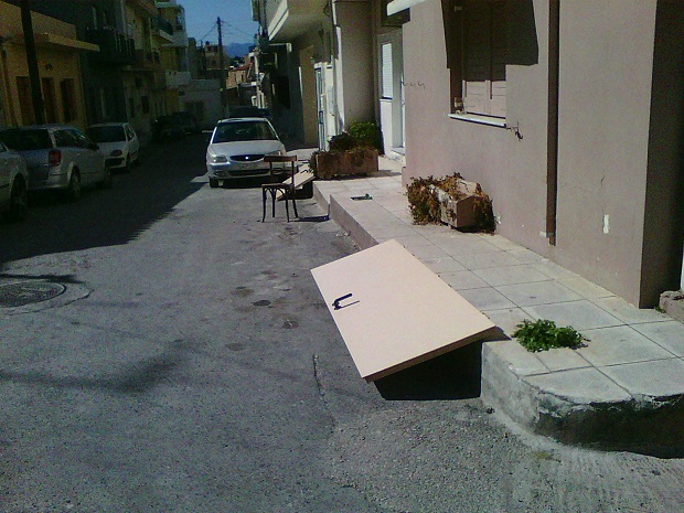 Καθημερινά όλο και πιο… “εφευρετικοί” αποδεικνύονται οι Ηρακλειώτες, προκειμένου να διασφαλίσουν τη στάθμευση των οχημάτων τους ή ότι δεν θα αφήσει άλλος το όχημά του έξω από το σπίτι τους!