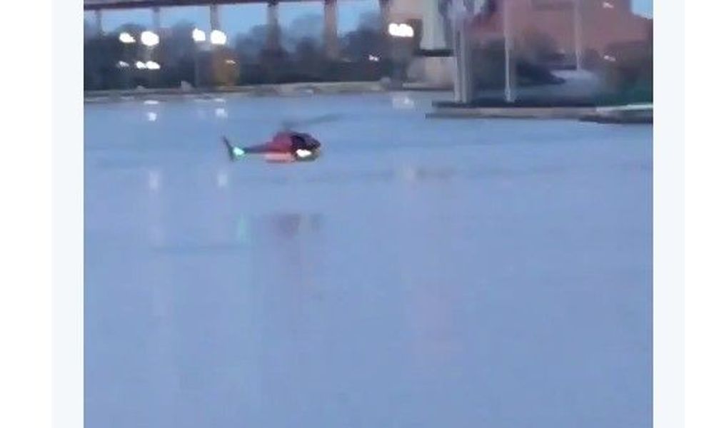 Τηλεοπτικά δίκτυα μετέδωσαν πλάνα του κόκκινου ελικοπτέρου Eurocopter AS350, που ανήκει στην τουριστική εταιρεία Liberty, αναποδογυρισμένου στο νερό.