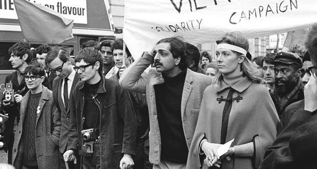 Μία φωτογραφία που είδαμε στο διαδίκτυο, δείχνει τον επιστήμονα (με τα γυαλιά και τα μπαστουνάκια), μαζί με τον Tariq Ali και την Vanessa Redgrave σε διαδήλωση κατά του πολέμου στο Βιετνάμ το 1968.