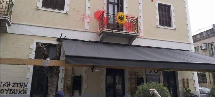 Ομάδα κουκουλοφόρων έκανε επιδρομή το πρωί στο γερμανικό προξενείο στην Πάτρα, έριξαν μπογιές στο κτίριο, έγραψαν συνθήματα στην πρόσοψη και πέταξαν τρικάκια για τις διώξεις που υφίστανται οι κούρδοι.
