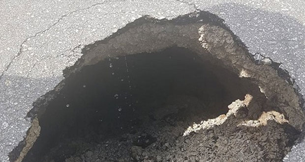Έχει ανοίξει μία λακούβα και κινδυνεύουν οι οδηγοί να πέσουν μέσα.