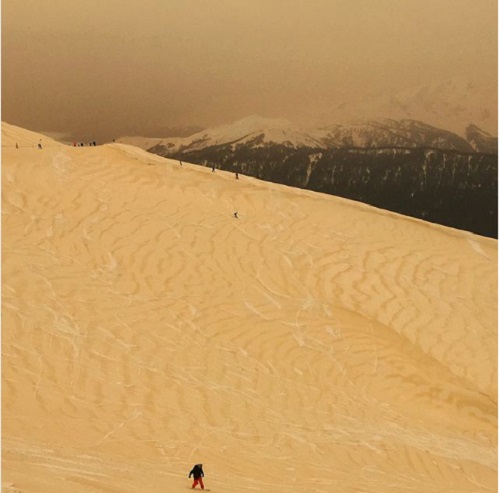 What turned snow orange in Sochi, Russia? Believe it or not, according to the Athens Observatory, winds transported sand and dust from the Sahara some 1500 miles (2400 km) from north Africa to southern Russia. More could be on the way Monday. pic.twitter.com/gu29Wjh9R9