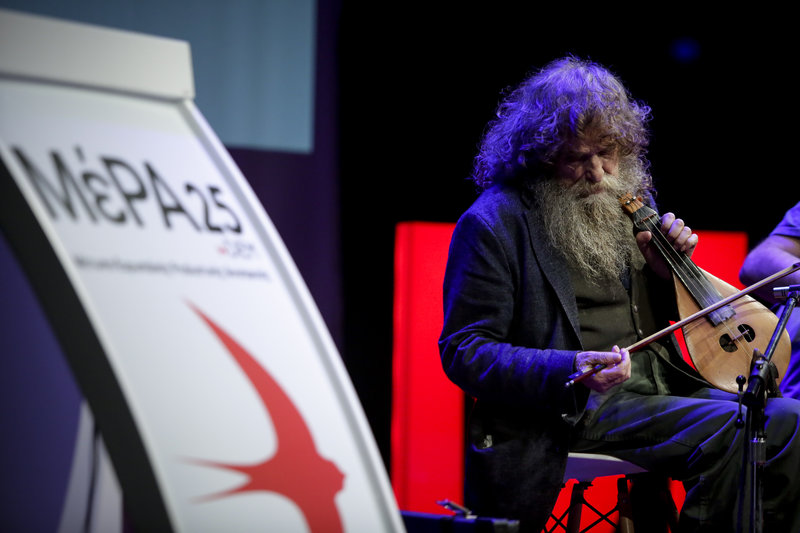 Πριν από την κεντρική ομιλία του Βαρουφάκη υπήρξε συναυλία του γνωστού Κρητικού μουσικού Ψαραντώνη, τον οποίο ο πρώην υπουργός Οικονομικών ασπάστηκε θερμά.