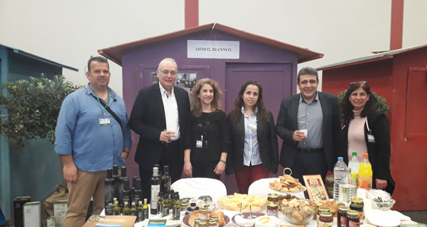 Με επιτυχία η συμμετοχή του Δήμου Βιάννου στο 7ο Παγκρήτιο Forum προώθησης κρητικών προϊόντων στα κρητικά ξενοδοχεία και στα δίκτυα διανομής- super market που διοργανώθηκε από τα Επιμελητήρια Κρήτης το Σάββατο 24 Μαρτίου 2018 στο Διεθνές Εκθεσιακό Κέντρο Κρήτης (ΔΕΚΚ). Στο περίπτερο του Δήμου παρουσιάσθηκαν αρκετά αγροτικά και κτηνοτροφικά προϊόντα όπως μέλι, τυριά, ελαιόλαδο, κηπευτικά, μπανάνες αρτοσκευάσματα, παραδοσιακά προϊόντα από ελαιόλαδο, κλπ που διέθεσαν οι αγρότες, οι κτηνοτρόφοι, και φορείς του Δήμου, ενώ εξαιρετικό ήταν το ενδιαφέρον που έδειξαν για τα Βιαννίτικα προϊόντα οι επαγγελματίες που επισκέφτηκαν το περίπτερο.