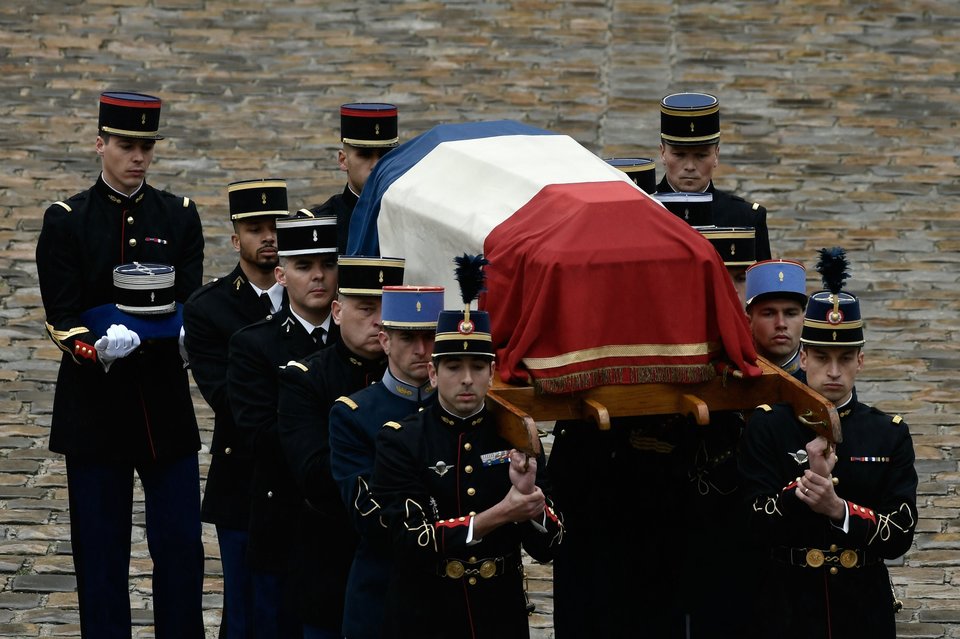 Με συνοδεία μοτοσικλετιστών της προεδρικής φρουράς, η αυτοκινητοπομπή της κηδείας αναχώρησε από το Πάνθεον, το μνημείο που είναι αφιερωμένο στις μεγάλες προσωπικότητες της Γαλλίας, ενώ ενός λεπτού σιγή τηρήθηκε σε όλα τα τμήματα της χωροφυλακής και της αστυνομίας, αλλά και στο προεδρικό μέγαρο των Ηλυσίων και στο υπουργείο Εσωτερικών.