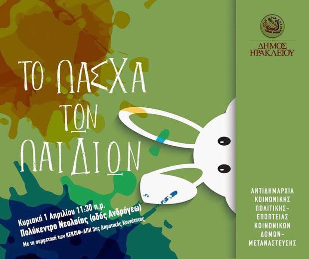 Το «Πάσχα των Παιδιών» διοργανώνει και φέτος η Αντιδημαρχία Κοινωνικής Πολιτικής του Δήμου Ηρακλείου, την Κυριακή 1η Απριλίου, στις 11.30 στο Πολύκεντρο Νεολαίας.