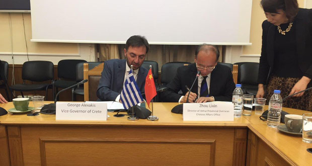 Μάλιστα για το τομέα του τουρισμού ο κ. Αλεξάκης είπε ότι ήδη από το 2017 υπάρχει νέα απευθείας γραμμή Πεκίνο – Αθήνα, η οποία πιστεύουμε να διευκολύνει τις πολυεπίπεδες ανταλλαγές και σε συνδυασμό με το έτος 2018 που είναι αφιερωμένο στις σχέσεις Κίνας και Ευρωπαϊκής Ένωσης, όπου αναμένουμε περισσότερες ανταλλαγές, εμπειρίες, συνεργασίες και επισκέπτες από την μακρινή και όμορφη Κίνα στη φιλόξενη Ελλάδα και στην Κρήτη.