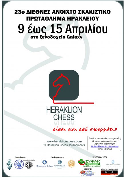 Περισσότερες πληροφορίες και δηλώσεις συμμετοχής στο www.heraklionchess.com, στο mail klokas@heraklionchess.com ή στο 6937880733.