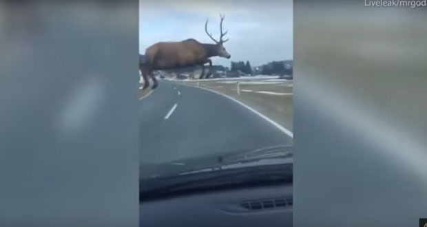 Όταν οδηγείς και περνά από πάνω σου ένα… ελάφι! (Βίντεο)