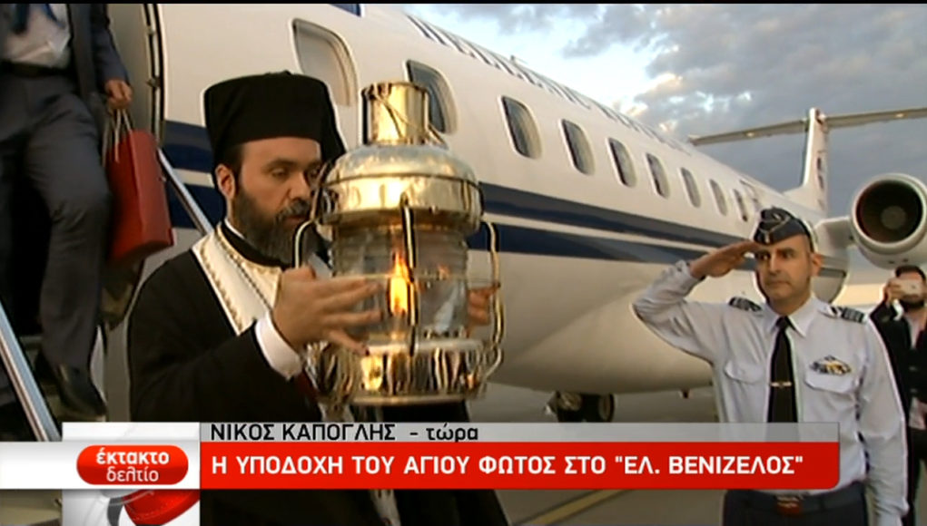 Με μικρή καθυστέρηση έφτασε λίγο πριν από τις 7.2Ο στην Αθήνα, το κυβερνητικό αεροσκάφος που μεταφέρει το Άγιο Φως. Η υποδοχή κι εφέτος έγινε με τιμές αρχηγού κράτους στον εθνικό αερολιμένα «Ελευθέριος Βενιζέλος».