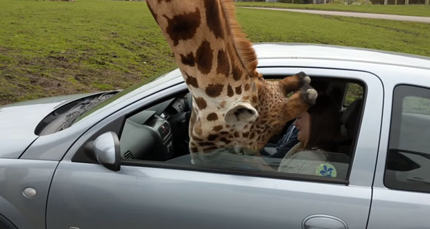 Βίντεο κατέγραψε την οδυνηρή στιγμή που μια ανυποψίαστη καμηλοπάρδαλη προσπαθεί να πάρει φαγητό από τους επιβάτες, αλλά κατέληξε να φεύγει πανικόβλητη καθώς το παράθυρο του αυτοκινήτου έγινε κομμάτια πιέζοντας το κεφάλι της. Το περίεργο ζώο είχε βάλει το κεφάλι του στο αυτοκίνητο ενός ζευγαριού στο West Midlands Safari Park στο Worcestershire χθες.