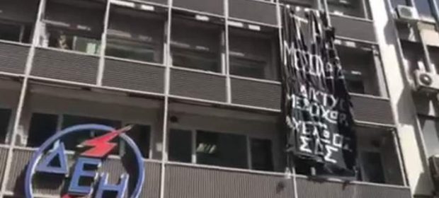 Κατάληψη στα κεντρικά γραφεία της ΔΕΗ στην οδό Χαλκοκονδύλη πραγματοποιούν αυτήν την ώρα μέλη του Δικτύου Μεσοχώρα Αχελώος.