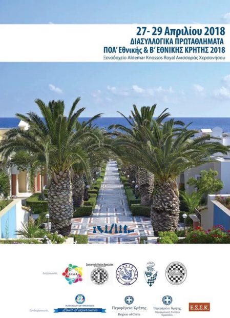 Μια ακόμη μεγάλη αθλητική διοργάνωση σκακιού θα πραγματοποιηθεί στο Δήμο Χερσονήσου με τη συμμετοχή περισσότερων από 200 αθλητών από όλη την Κρήτη από τις 27 έως 29 Απριλίου 2018 στο Aldemar Knossos Royal στον Ανισσαρά. Συγκεκριμένα, θα πραγματοποιηθεί η τελική φάση της κορυφαίας διασυλλογικής διοργάνωσης της Κρήτης, το Διασυλλογικό Πρωτάθλημα Β΄ Εθνικής (με τη συμμετοχή δέκα ομάδων) και του Προκριματικού Ομίλου Α΄ Εθνικής (με τη συμμετοχή οκτώ ομάδων).